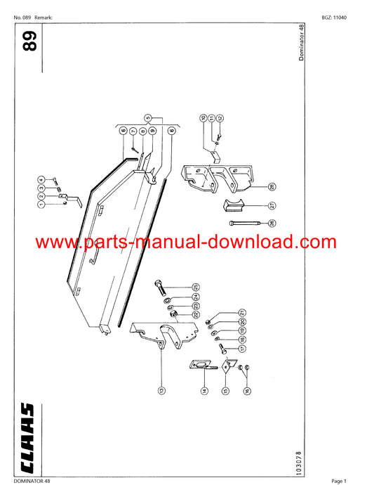 Claas 48 Combine Dominator Parts Catalog Manual Instant Download