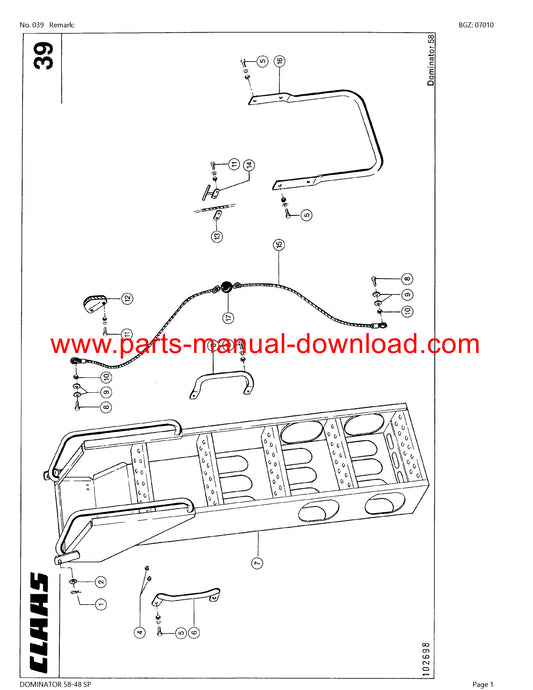 Claas 58 - 48 Sp Combine Dominator Parts Catalog Manual Instant Download