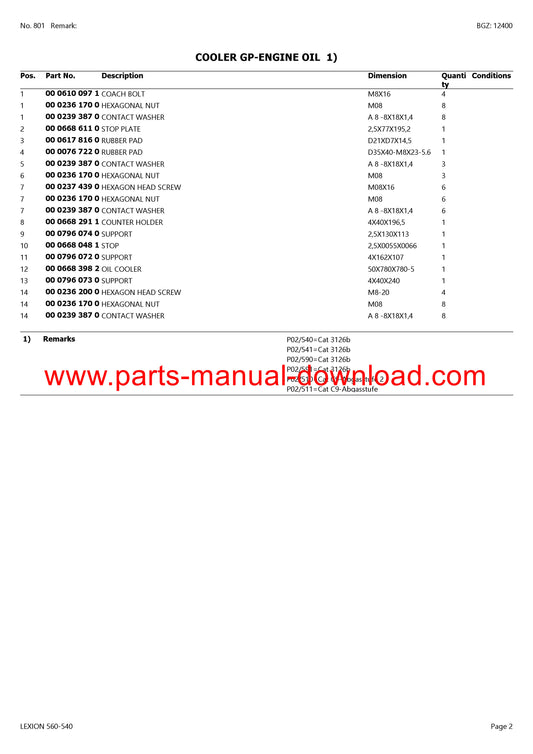 Claas 560 Combine Lexion (North America) Parts Catalog Manual Instant Download
