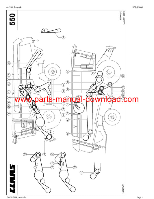 Claas 580R, Australia Lexion Combine Parts Catalog Manual Instant Download