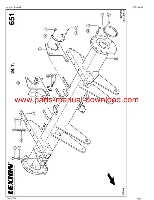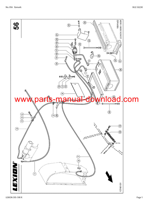 Claas 595 - 590r Combine Lexion (North America) Parts Catalog Manual Instant Download