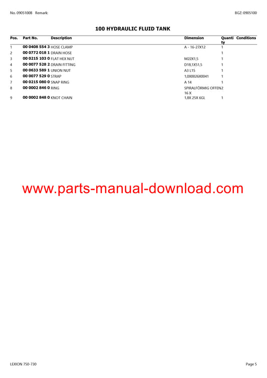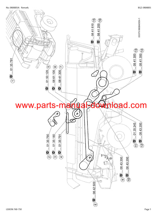 Claas 750 - 730 Combine Lexion (North America) Parts Catalog Manual Instant Download
