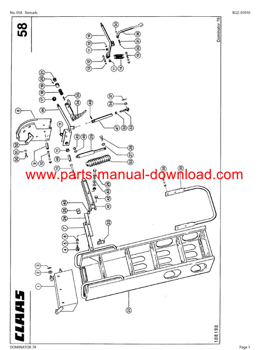 Claas 78 Combine Dominator Parts Catalog Manual Instant Download