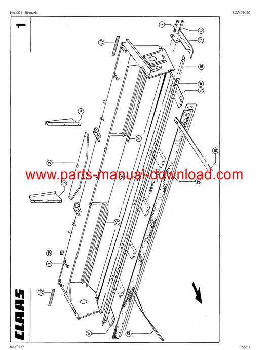CLAAS COMBINE RAKE UP PARTS CATALOG MANUAL INSTANT DOWNLOAD