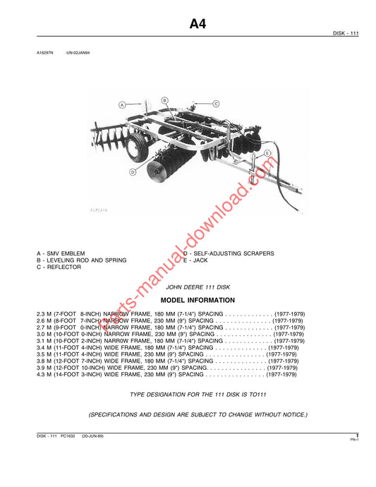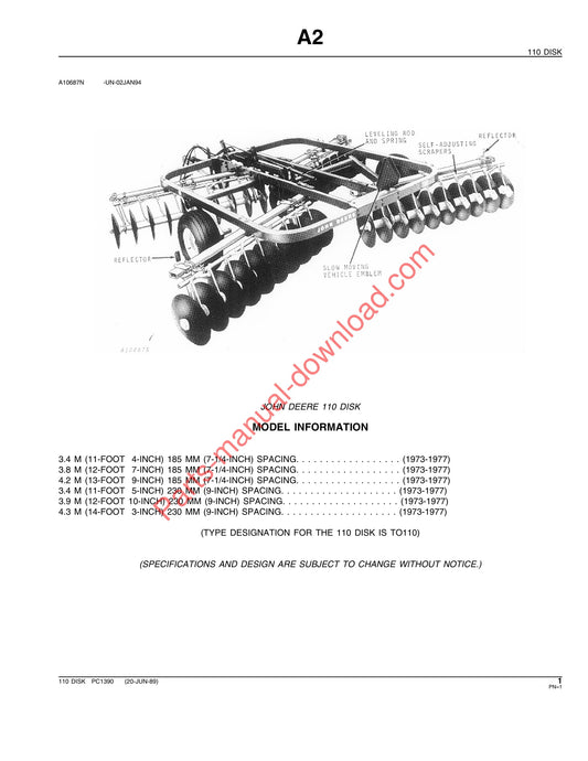 John Deere 110 Disk Parts Manual PC1390 Instant Download