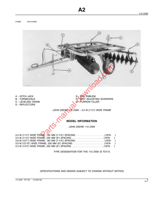 John Deere 115 Disk Parts Manual PC1736 Instant Download