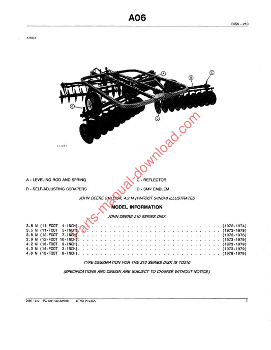 JOHN DEERE 206 209 SPREADER PARTS MANUAL PC2196 INSTANT DOWNLOAD