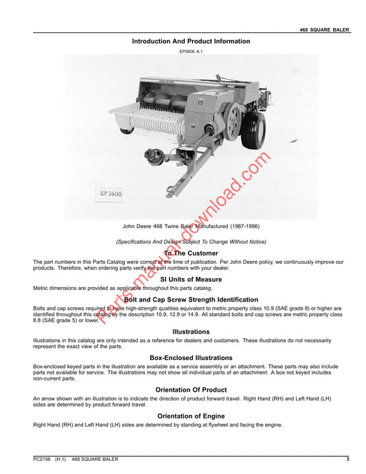 John Deere 4650 R04 RR4 4260 4660 Row-crop Cultivator Parts Manual PC499 Instant Download