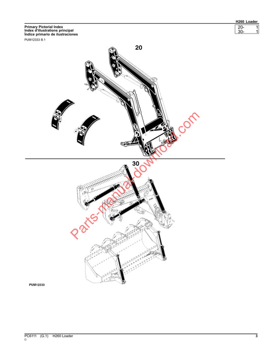 John Deere H260 Loader Parts Manual PC6111