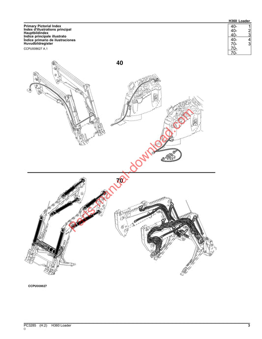 John Deere H360 Loader Parts Manual PC3285